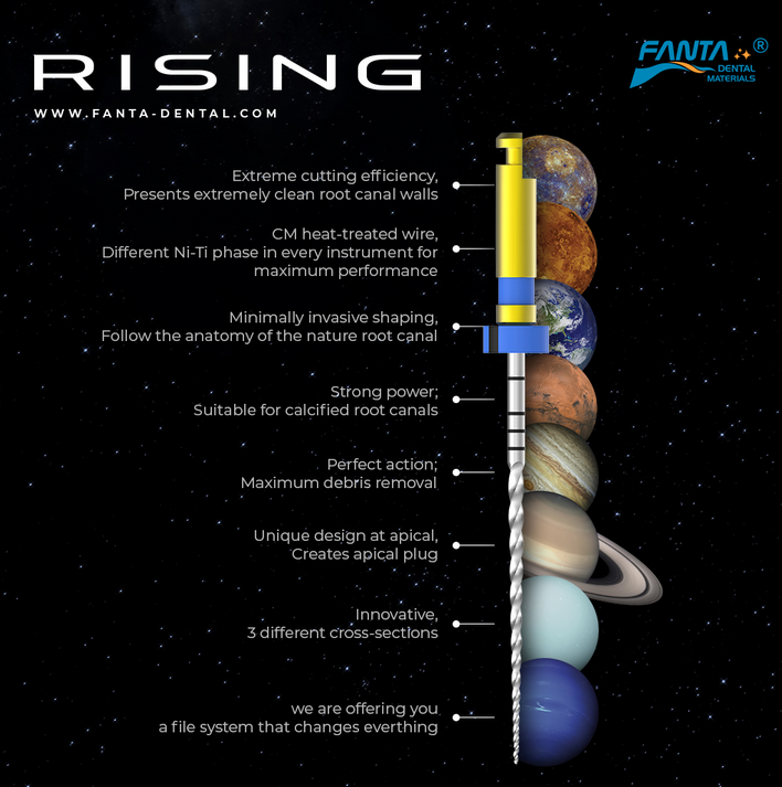 ΣυσκευέςΟι ρίνες Rising της Fanta Dental έχουν σχεδιαστεί για να αποδίδουν αξιόπιστα ακόμη και σε δύσκολες, απαιτητικές ανατομίες, συμπεριλαμβανομένων ενασβεστιωμένων ριζικών σωλήνων, χωρίς να θυσιάζουν τη φιλοσοφία της ελάχιστα επεμβατικής ενδοδοντίας.